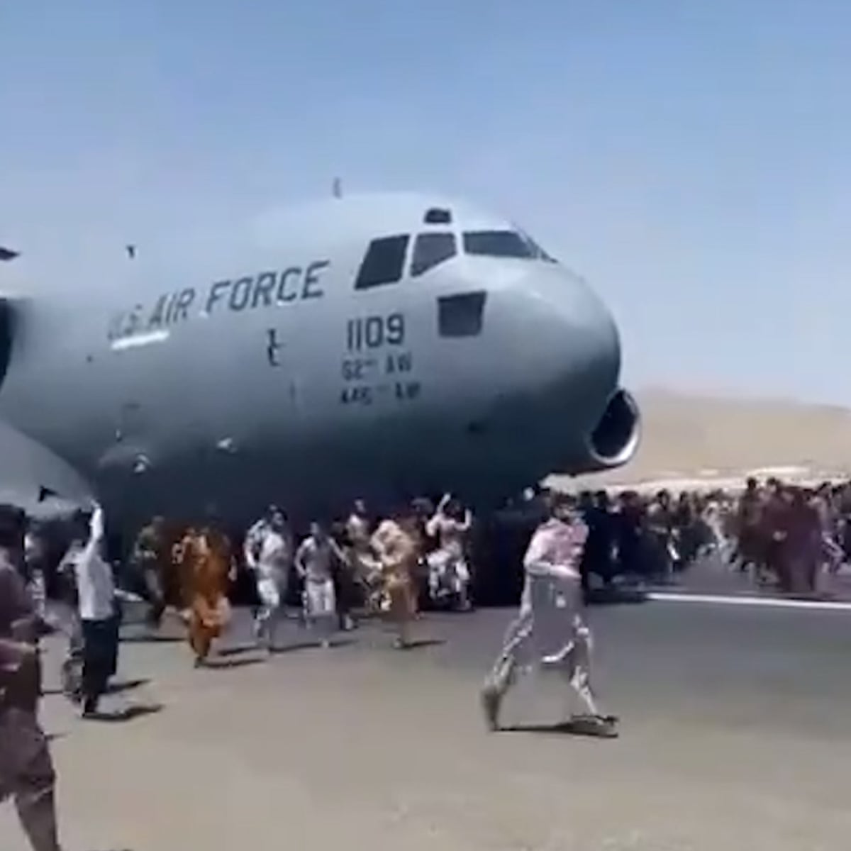 Mobs caused a chaotic scene at the Kabul Airport. Um vor den Taliban zu fliehen haben Hunderte Afghanen das Rollfeld gestürmt.