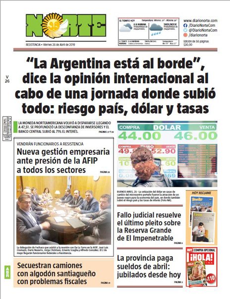 تويتر Diario Norte Desde على تويتر Buenviernes La Tapa Del Viernes 26 De Abril De 2019 De Diarionorte Norte50anos Norteprimerosiempre Chaco Noticias Https T Co F9qqdposop